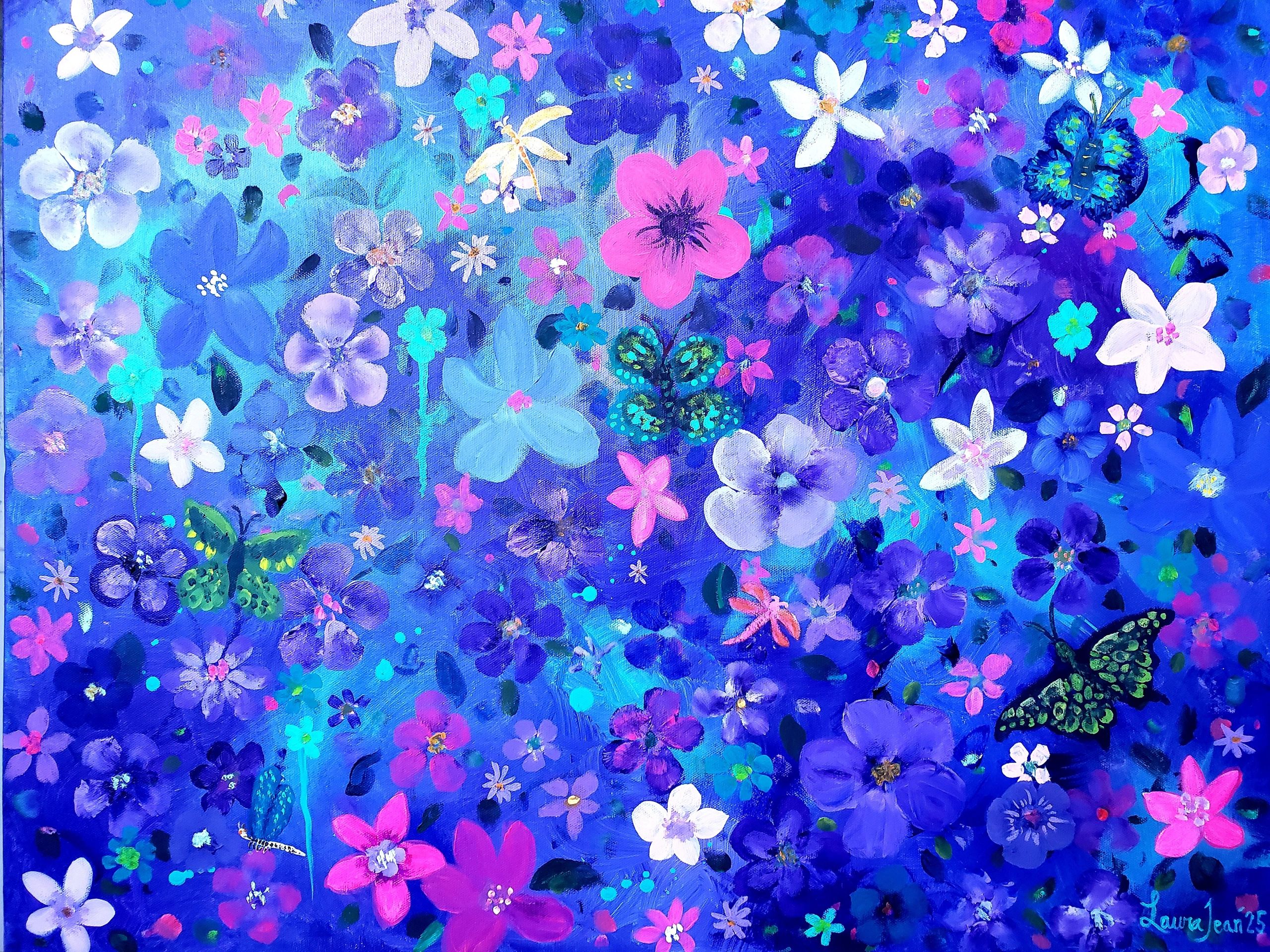 A field of flowers alive with movement and color